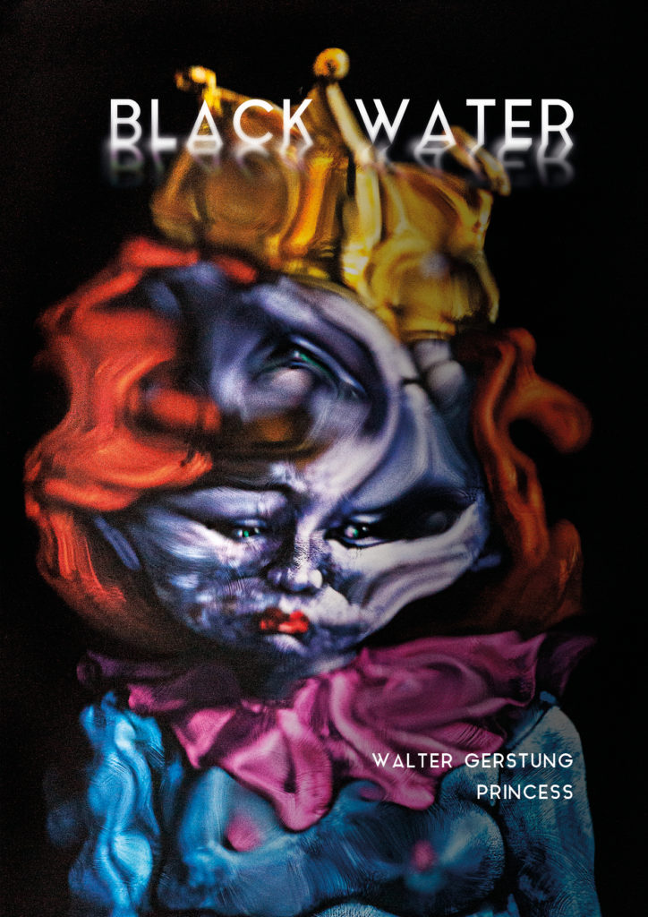 Black Water – hier agiert der Künstler im Spannungsfeld aus Malerei und digitaler Fotografie. Es beginnt mit einem klassisch gemalten Motiv in Acryl – düster, expressiv, mit dem für Gerstung typischen Hang zum Grotesken. Doch dieses Bild ist nur die Matrix für ein kontrolliertes Chaos: Im schwarzen Wasserbecken entfaltet sich ein Spiel von Bewegung, Licht und Reflexion. Die Kamera friert diesen Augenblick ein – in der tausendstel Sekunde entsteht ein Werk, das nie wieder reproduzierbar sein wird.